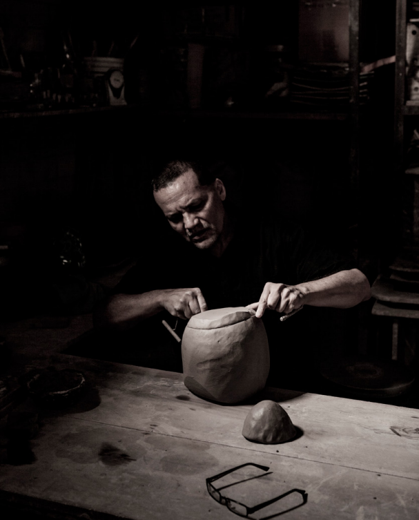 Durante cuarenta años, la arcilla de sus manos ha girado alrededor del principio cíclico de la vida: volver al origen y al pasado para moldear el futuro. Cíclica es también la búsqueda del escultor ceramista para su próxima creación.