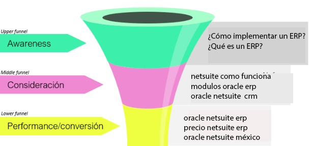 En Performance, colocamos keywords navegacionales y transaccionales. Por ejemplo, la keyword “oracle netsuite mexico” muestra una intención clara no solo del producto, sino incluso del país donde opera la empresa.