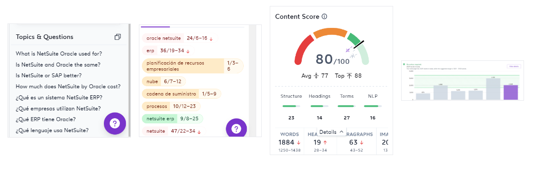 - Luego de publicado el contenido, tiene un módulo de auditoría y comparación frente a los top sites posicionados.
